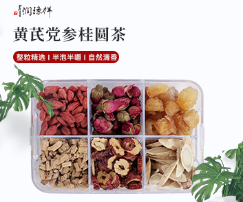 - 配料:黨參 黃(huáng)芪 枸杞 大(dà)"©棗 玫瑰花(huā) 桂圓
